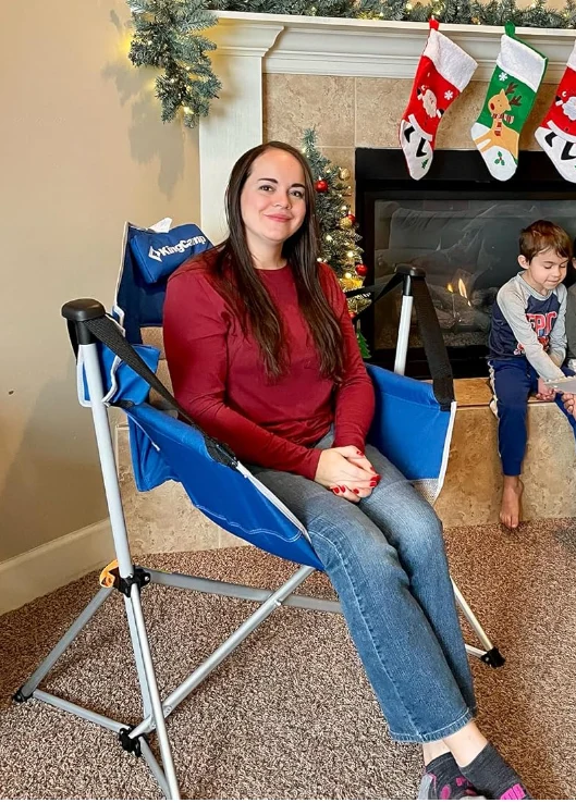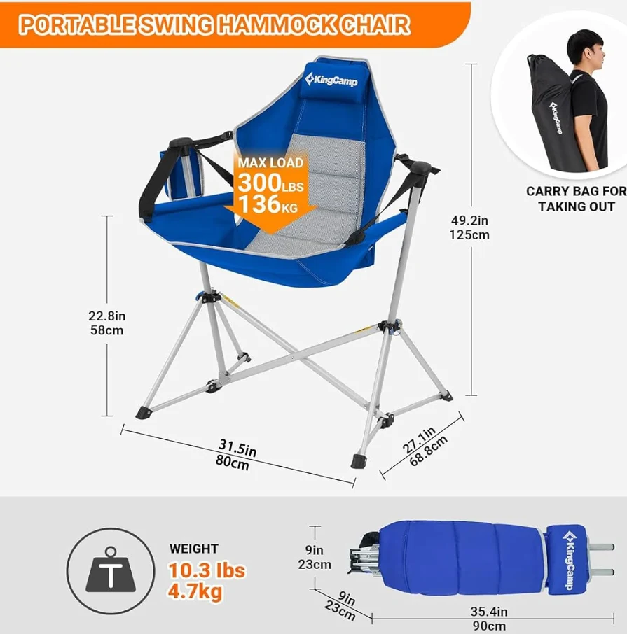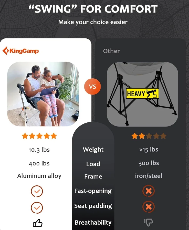 Mwenyekiti wa Kambi ya nje ni 37.8 "x27.1" x49.2 ", una eneo la kiti cha chumba cha kuzunguka bila kizuizi, na backrest ya juu inaweza kuunga mkono kabisa mgongo wako. 22.8" nje ya ardhi, mwenyekiti wa kambi anayetikisa ni kamili kwa watu wazima kunyoosha miguu kwa uhuru.