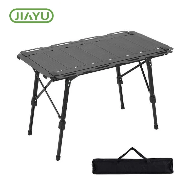 Folding alumini-iron nje ya kambi ya nje.can hata kutumika ndani kwa madhumuni anuwai. Ubunifu wake unaoweza kubadilika inahakikisha kuwa unaweza kufurahiya utendaji wake na urahisi popote adventures yako inakuchukua.zhejiang Jiayu Bidhaa za nje Co, Ltd, na kuifanya iwe rahisi kusafirisha na kuhifadhi. Wakati hautumiki, pindua meza chini na uivute mbali kwenye shina, chumbani au chini ya kitanda mpaka uihitaji tena.