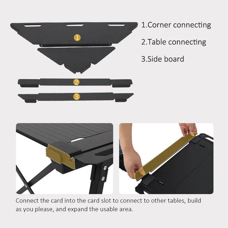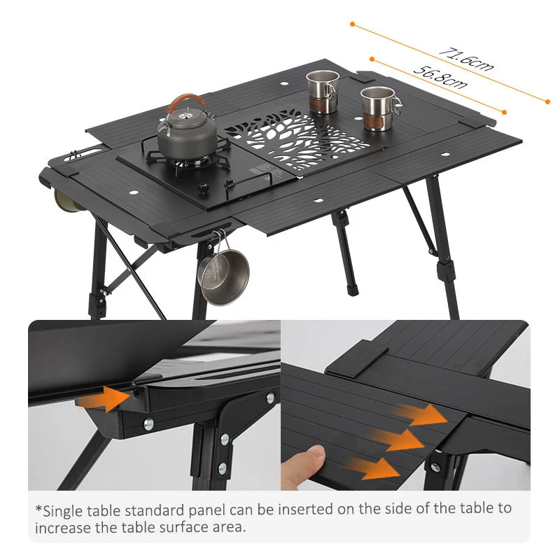 Kuweka meza ya kambi ya nje ya alumini-chuma, ikiwa unachunguza eneo la mlima lenye nguvu au unafurahiya pichani kwenye uwanja wa nyasi gorofa, meza hii ya kambi inashughulikia changamoto mbali mbali, kutoa msaada thabiti na wa kuaminika kwa shughuli za nje.
