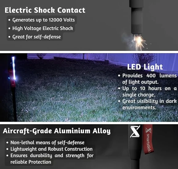 Njia mbili zinazopatikana kwenye LED: Mwanga mweupe mkali mzuri kwa kambi na taa nyekundu/bluu kwa hali ya dharura, na kuifanya kuwa zana nzuri ya kujilinda kwa vijiti vya usiku.