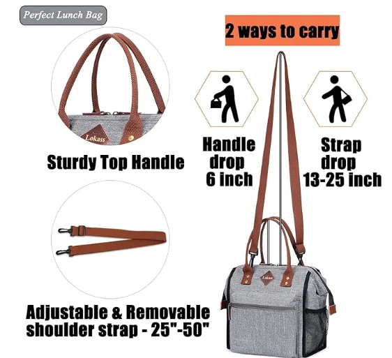 Mfuko mkubwa wa chakula cha mchana una chumba kuu (10.5 "x6" x12 "), mfukoni mkubwa wa mbele (8" x7 "x1.5"), mfukoni wa nyuma (9.5 "x6.5") na mifuko ya matundu 2 ya upande. Hushughulikia juu na muundo wa bega unaoweza kubadilishwa na unaoweza kutolewa (25 "-50") kwa kubeba rahisi.