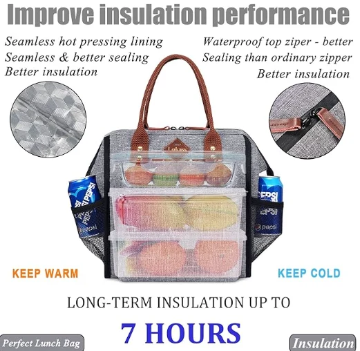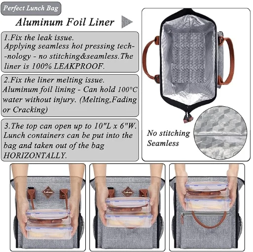 Mfuko wa baridi wa nje wa aluminium ya nje ni dhibitisho la kuvuja 100%, ni rahisi kusafisha na haitayeyuka kwa urahisi. Kitambaa cha Nylon ni sugu ya maji na zipper ya juu haina maji. Kazi za kuzuia maji na maboksi ya begi hili la chakula cha mchana ni bora.