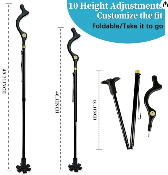 Urefu unaoweza kubadilishwa kutoka 40 hadi inchi 49, kukunja rahisi na inaweza kutumika kwa mtu yeyote kutoka futi 4.5 hadi miguu 6.5 'na hadi pauni 300.